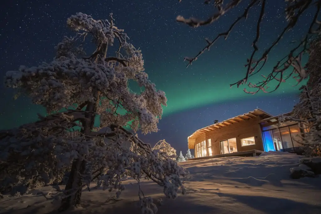 Surrounded by 300 hectares of reindeer-roamed reserve, this exclusive 10-bedroom lodge and its adjoining two-bedroom villa offer unmatched privacy. Access is limited, but you can arrive by helicopter, boat during the summer months, or the more popular option: a Mercedes-Benz 4×4, which can be followed by a reindeer-drawn sleigh right to the front door.